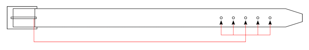 Select one of your belts that fits you best. Stretch out the belt on a flat surface and measure it from the inside edge of the buckle prong to the billet hole that is used the most. A sample illustration is shown above.